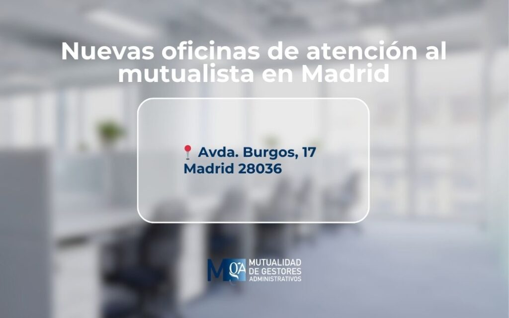 A partir del 16/06/2025, la Mutualidad añade un nuevo punto de atención al mutualista en Avda. de Burgos, 17 – 28036 Madrid. Con el objetivo de mejorar la atención presencial, ponemos a disposición de nuestros mutualistas unas nuevas oficinas en Avda. de Burgos, 17...